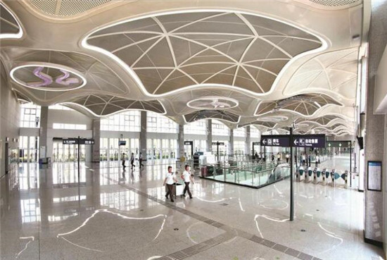 8號線三期開通后,行車間隔約9分鐘,野芷湖到軍運村站單程時間為6分鐘,市民可以乘坐地鐵更加方便地前往軍運村。昨日記者在現場看到,軍運村站內設計提取車站建筑外立面的連拱造型,空間形態采用拱形橋拼接,形如和平之橋,寓意各國友人一道共享友誼、同筑和平。